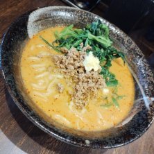 地獄の担担麺 護摩龍 トッピングのパクチーが売り切れで残念。 ゴマが濃くて美味しい。 食べ始めは辛さを感じたけど、食べ進めていくと慣れてきて全然辛くない。 次回はワンランク上のにしようかな。