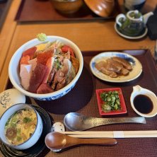 【旨・海鮮丼】 大船の現場でビジネスミーティングがあったので少し早めに駅に着いて地元のグルメランチ探訪♪ 前回行った大船海鮮食堂は満席だったので こちらの中通りみわ久に行ってみた この旨・海鮮丼は、 先ずそのまま海鮮丼として食べて 〆は別添えの漬け魚と海鮮出しでお茶漬けにして食べると言う2度美味しい絶品海鮮丼でした😋 冷たい茶碗蒸しも美味しゅうございました!