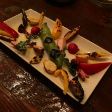 有機野菜の炭火焼き盛り合わせ。一番搾りのオリーブオイルと旨塩をまぜていただきます。 地元で採れた野菜は、旨みがぎゅうっ!と濃縮されていて、それを炭火で炙ることで、見事に引き出しています。しかも色んな種類の野菜の味わいを楽しめて飽きません。ワクワクします! この一皿はしみじみ美味しい、思うのでした。( ˘ө˘ )♡