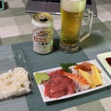 という事で本マグロ刺身! 今日はビール自粛! 美味い!(º﹃º ) ここのマグロは美味いよなあ 角上魚類のより美味いと思う。 何が違うのかね(º﹃º )