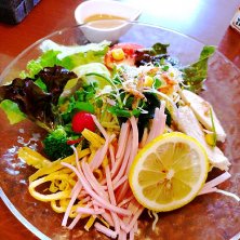 冷やし中華始まった!このお店のが食べてみたいと思いつつ毎年食べそびれて夏が終わってたから、念願の♡ 予想の斜め上を行く美味しさ😆 自家製タレが美味しすぎたし、具材たっぷりで麺が見えない🤣