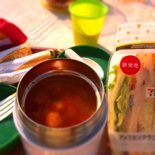 今日の現場弁当。海ノ中道にて。マラソン大会仕込み