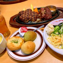 きのこハンバーグ タンハンバーグ チーズインハンバーグです ハンバーグの肉の味とやらが とても美味しく大満足なお味ですq(q''∀`*)また 食べたくなっちゃいます。このお店もサラダ パン 食べ放題 ドリンクバーは追加料金 お腹も満腹になり 大満足なお店 おすすめです