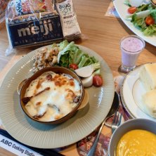 今年最後の料理教室はクリスマスイブ🎄 明治とのタイアップ1dayレッスン 『牛乳消費応援!旬を味わう冬の一菓一汁二菜「乳和食」をつくろう』 ひたすら牛乳を使うレッスン ・鱈とミルク麩とかぶの和グラタン ・野菜と食べる・カシューナッツ入りミルク肉みそ ・オートミールとスパイス人参のすり流し ・ベリーのミルクスープをかけていただく牛乳カステラ おみやげも明治 ・明治ミルクチョコ ・ザバスのプロテインドリンク2種 ・アンパンマンの麦茶 ・アンパンマンのフルーツソース 子どもへのおみやげ😏