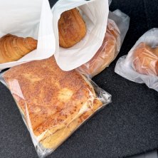 お昼ご飯)^o^( クリーニング出してたら、近くのパン屋さんに行列が! 行く気なかったけど、並んでみた😆