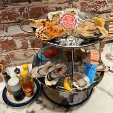 友人のお姉さまたちと合流。購入した商品に不具合があり、交渉していたので、私たちはカフェへ。 ルイボスティー、トマトジュース。 お姉さまのバッグ交換してもらったが、納得出来ず、再度来店。残念だけど返品。他の店舗で買い直すことに。貴重な体験をしました。 気を取り直して、オイスターバーへ。4人席が空いたばかりでラッキー。悪いこともあれば良いこともある。 その日のお勧め生牡蠣とスパークリングワインのセット。同じものをおかわりして、大満足な時間を過ごす。出汁と生姜のスープがおいしかった。