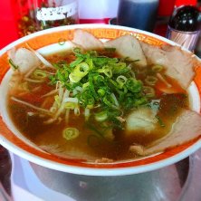中華そばAセット(ライス付き)800円。神戸の老舗ラーメン店…本店は大倉山、京都の第一旭ののれん分け店だそうです。初来店です。ラーメンは辛めの豚足醤油?スープに、極細ストレート麺。硬さは指定しなかったから普通かな。うん、たくさんの薄切りチャーシューに山盛りネギ。食べ進めて、薬味入れるとより風味が増して。美味いです。ライスと一緒に食べて、ボリューム的にも大満足^^