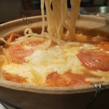 昨日の晩御飯♪ トマトチーズ土鍋麺の麺リフトアップ
