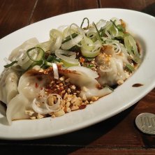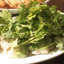 ランチその② ⚫️パクチー餃子6個 580円(税別) そのままと、ミキサーに掛けた物、2つのパクチーが味わえる♪ パクチー好きには良い餃子♪