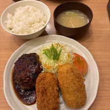 ハンバーグオニオンバターソース エビフライ カニクリームコロッケ定食 ここは孤独のグルメに登場した 町の洋食屋さんです。 写真は撮れなかったけど、松重豊さんのサインもあった✍️ ハンバーグのオニオンバターソースが濃くて 癖になる美味しさ😋 フライも衣がバリバリでいい感じ。 美味しくて、おなかいっぱいになりました🥰