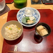 これで3000円!予約は半年待ちです(*゚∀゚*) 味処おおたに *毛蟹とホワイトアスパラ の冷静茶碗蒸し *空豆 としらすのしんじょ *コチと黒ムツ の焼き霜造り *とり貝 とあさり の揚げじゃがいもまんじゅう *生海苔あんかけ *胡麻豆腐 *土鍋ごはん、赤出し おくらと新ごぼう、だし巻き卵 、きゅうり のぬか漬け、かりもり の浅漬け、柚子大根 、新生姜 のもずく酢 *さくらんぼとすだちのシャーベット、ほうじ茶 のアイスクリーム