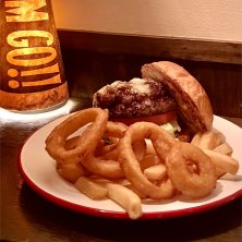 MEXICAN PULLED PORK BURGERとビール パクチー増量&ポテトも増量 パイナップルジュースで煮て焼き上げたプルドポーク、パイナップルとアーリーレッドのサルサ、 そこにコリアンダー🌿 夏に向けてリリースされた6月のマンスリーバーガー! この日は湿気が多くてまさにピッタリなコンディション ホームメイドのバーベキューソースもめちゃ美味しかった、、 オーナー氏のサブプロジェクトのビール、 損壊バンズをアップサイクルしたパン原料のビール、香ばしくてこれまたピッタリでした!