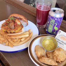 POTATO HEAD BOMB BURGERとゴールデンチキンナゲットとサワーエール もう食べたくなってしまったマンスリーバーガーは ポテトバンズにちょい辛スパイシーなマッシュポテト、スモーキーソース、自家製ドライトマト 気になっていて数日前に秘密の作り方を聞いたナゲット 待ってる間にこいつとINKHORNの店舗でも以前飲んだ黒系ベリーとバニラのサワーエール あー美味しい美味しい美味いし美味しい 大江戸線2駅歩いたけどそんな歩数上がらなかったな、、