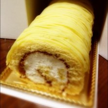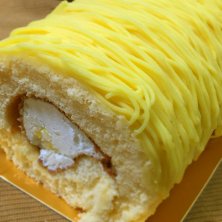 黄金のモンブランロール ふんわりロール生地の内側は生クリームと香ばしい刻み栗、外側にはカスタードクリーム、更にその上にマロンペーストがたっぷり。 さすが、楽天モンブランランキング1位!