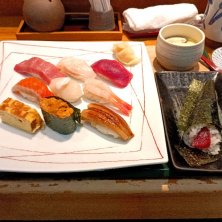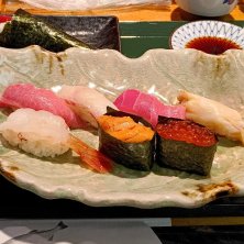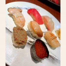 今週は俗世間から離れるため、最後の晩餐になっても良いように空腹に関係なく食べ納める。 皆入店で名前を書いて待つのに入店するやいなやいつも座る場所へ。(常連扱い?) 北海特選握りセット💴3080に2度目以降のお客用の鉄火巻き(サービス) セットなので、味噌汁とデザートもしっかり付きます。