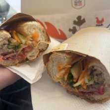 朝ごはんは、昨日の飲み会メンバーがおすすめしてくれたバインミー屋さんでテイクアウト。美味しゅうございました😋