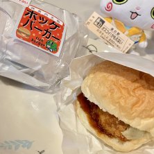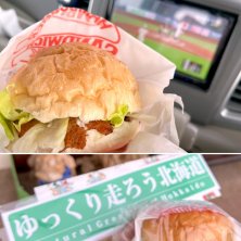 ゆっくり走ろう北海道‼️ お昼ごはん! 車内で南北海道大会⚾️準決勝を観ながら😊 ☆ ホッケフライバーガー🍔
