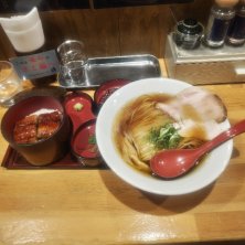 平日ランチタイム限定の塩そば・ひつまぶしセット1000円。見た目どおり淡麗な塩そばはさて置き、らーめんスープで割るひつまぶしのコスパとクオリティに驚愕Σ(꒪ȏ꒪)★★★☆☆