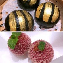 そう言えば・・・火曜日のポルトガル料理投稿✨ ここのところずっとネタ切れてて・・・ シリーズ続けるのって、難しいですね😅 てなわけで変わり種の点心を😜 カスタードクリーム入りな黒い饅頭! 金色な模様があるのが中華らしい? そして・・・内容忘れちゃったけどお団子✨ 美味しかった記憶あり😜😜