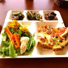昨日は道の駅のレストランでランチ。 メインをパスタ、肉料理、魚料理から選んでオーダーし、サラダや惣菜、ピザ、カレーなどが食べ放題のハーフバイキング方式。 まずは、サラダと惣菜、ピザを食べます。