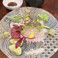 お刺身欲が高まり、食べたいお造り三種盛りを。生クジラほほ肉、生しまあじ、生とり貝炙りをチョイス。鯖の浅締めは売り切れでざんねーん。 お姉さんとり貝どれがいいですか?と下ごしらえしたとり貝チームを見せられ、欲張って大きくて肉厚のものを選んでしまいました。そして1切れ分だけ鯖の浅締めありましたとサービスいただきました!わーい。