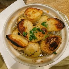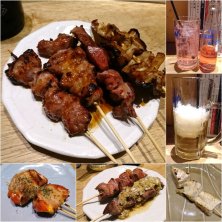 左上からレバー・ハツ・チレ・シロ・ハラミ・タン下・ハラミステーキ・ニンニクオイル煮 まっ茶色な絵面ですが先にサラダも食べましたので笑 店主はこの界隈の有名店出身らしく、どおりで納得のやきとんを出してくれます(^^)