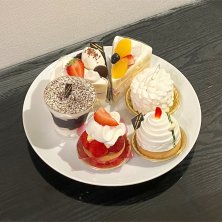 お子とテクテク歩いて 会社から帰宅していると 可愛らしいケーキ屋さん 発見(o・ω[+] #レアチーズケーキ 小さくて可愛い♥ 花びらまで食べました