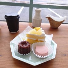 季節のショートケーキ シトラス プレーンカヌレ にゃんチー いちご イートインで😋 アンティークの会社か、ネコネコがあるわけだ👏 カフェスペースがあるケーキ屋さんは無条件に好き❤️