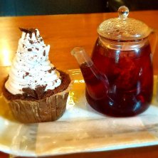 北海道で見つけたオシャレなカフェで、ハスカップとバナナのケーキ&アップルバニラティー♡