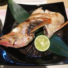 のどぐろ上半身塩焼き(笑) 絶妙な塩加減とあっさりの脂が美味しくって♡ 一尾食べられる勢い(それ、贅沢すぎ)。 ひっくり返したら、やっぱり喉が黒かったです。 おめめ周りのゼラチン質もトゥルンと頂きました!