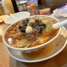 とろとろ豚バラ軟骨サンマーメン🍜♡ 安くてデカ盛りで美味しいお店♡ チャーシュー玉子炒飯とシェアしました🐼 どっちも美味しかった〜! あと、めちゃデカな唐揚げとチキン南蛮も1個ずつ🤣 どれも美味しかったです🥺