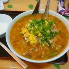 晩ごはん♪ 遠野で有名なドラゴンラーメンの ドラゴンラーメンの味噌味 私は辛い物が苦手なので、小辛にしました♪ 辛いだけで無くて、ちゃんと旨味もある美味しいラーメンでした(๑´ڡ`๑)