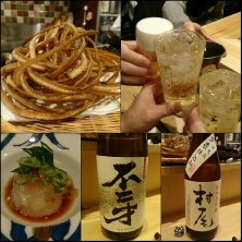 昨夜は中学ん時の⚽ サッカー部の友人たちと飲み会♡ おっさん4人で乾杯‼️🥂 おいらは角ハイボール♪ お通しは のれそれポン酢♪ 芋焼酎は 不二才と村尾 穴子の骨せんべい (写真だけ)