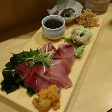 睦月のひとさら♡(*´ω`*) 天然ぶり腹身と背身 北海うに もずく酢 おからサラダ なまこ酢 切り干し大根