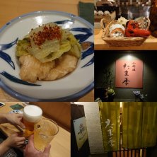 角ハイボールで乾杯♡(*´ω`*) お通しは 白菜と鶏肉の炊いたん♪😋 柚子七味かけ☺️