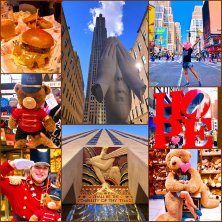 Hello! 今日も良い日だった。 朝からパレードがあり、昼まで寝ていました〜。歩行者天国なので、道路の真ん中で撮影❣️ 5th Ave.をUptown の方へフラフラ〜 ここには載せきれないくらいの沢山の発見がありました。 ロックフェラーセンターでは、アメリカ最古のトイストア(FAO Schwarz)を見つけたので、テディベア🧸を作りました。店内の大きなテディベアとも撮影❤️ 我が家に迎えたテディとソルジャーさんとも撮影❤️ ぺこぺこにはがっつりバーガー!そろそろ野菜食べたい🥬🥦