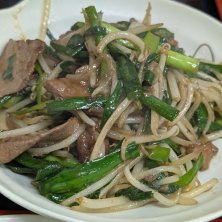 ニラレバ炒め。レバーたっぷり。夏のニラはかたい。甘口醤油タレはたっぷり。 今日はニラレバ炒めたのむお客さんが多かったです。