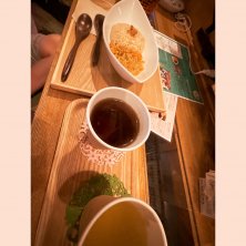 御徒町 湯もみカフェ「mominoki」 食物繊維たっぷり「みかん寒天ゼリー」 セイロンティーベースのハーブティー 「シェイプアップ」(*≧∀≦*) 足湯に入りながら、まったりお茶タイム。 足湯 45分(ハーブティー付き)1,080円なり〜。 カウンターなので、お一人様にも良いですね! 体もヘルシーうまうまでした! 疲れも取れました〜。