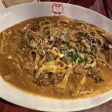 カレークリームパスタ🍝 ちょっと想像と違っててフィットチーネだとカレーうどんみたいやね!と話してました😆 もっと細麺のクリームパスタと思ってたので急に和食⁉︎となったのですが、食べると甘みもあって不思議な感覚でした笑 #カレークリームパスタ#カレー#クリームパスタ