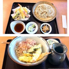 遅めの昼飯を 女神湖のお蕎麦屋 せんすいさんで よくばり三昧そば 迷ったらこれかも です