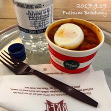 朝ごはんの続き★ホーチドエッグだとは理解したが、トマト風味とまでは読みきれず、若干戸惑う。駅のカフェにて。