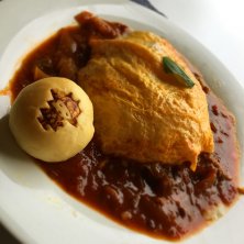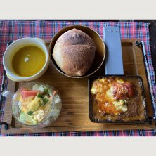 神石牛ハヤシライス オムライスっぽいけど中は白米 なぜか自家製パン付き (o^^o)