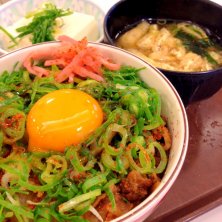 今日からスタートの新しいレッスンが無事終了しまし(^_−)−☆ 皆さん楽しんでいただけたようで、ホッとしたらお腹が空いちゃいました(^^;; バスを待つ間に大好きなねぎ玉牛丼健康セットをいただきます!