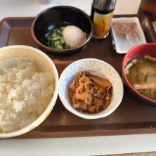 ※牛まぜのっけ朝食 市民大会8時、前のご飯 昨年ここで食べたのでここでこの間はローソンで考えてたので安い卵かけご飯にしましたが、今日は牛丼でもいいよとの事でこの朝食最強だなと思って、主人は何でもいいと言うので同じのにしました 1点差で予選敗退残念でした