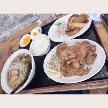 台湾料理 福源 熊本県 上天草市 大矢野町 上2307-4 唐揚げ定食 選べるラーメン(今回は台湾ラーメン)が付いている上に唐揚げがこのボリューム^_^ お腹いっぱいで、これ以上食べられません‼︎ 写真撮り忘れて一口パクッついてしまった。