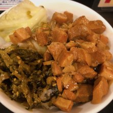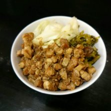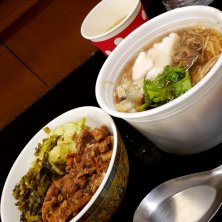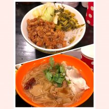 麺と一緒に頼んだルーロー飯300円 これも小茶碗サイズ 汁ダク、高梨、酢漬けキャベツとバランスが良く麺より 美味しく感じた。台湾好きの人の溜まり風で「いつもの」で通じている。