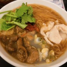 西新宿にある台湾屋台飯の店 カウンターのみで夜は台湾酒場になる。 麺線はソーメンを煮込んだソウルフード 鰹出汁ベースのあんかけにモツ煮や蒸し鶏、浅利パクチーが乗っている。 中華香料は殆ど感じない。具が冷たいので天地返しで温めた。卓上の台湾ウースターソースやカツオにんにくペースト 食べる辣油など味変 普通サイズ500円 は茶碗サイズ、味も量もちょと物足りない。