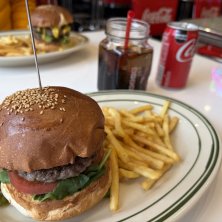 アボカドチーズバーガー 気になっていたが、やっと行ってみた。アメリカンダイナー風なお店、なかなかいい雰囲気。ミディアムで焼き上げたパティはシンプルな味付けで焼き上げていて、なかなか美味しかった♫。