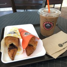 朝ごはんはバナナチョコクロとチョコクロとアイスベトナムコーヒー。日本か。