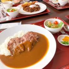金曜日はカレーの日🍛 本日のお昼ごはん🍴 わたくしのチョイスはステーキカレー🥩 ビーフ150g✨・・・といっても、 子どもたちの胃袋にも入るかと思われる😆 ちなみに、 わたくし以外の3名はみんなえびめし🦐💕 雪と曇り空だった朝の広島では、 天気と相談しながら高速を降りて、また乗って。 そして、岡山に近づくにつれ、晴れ間が☀️☺️ おかげさまで今夜の宿も確保できたし、 このままもう少し進みます👍✨